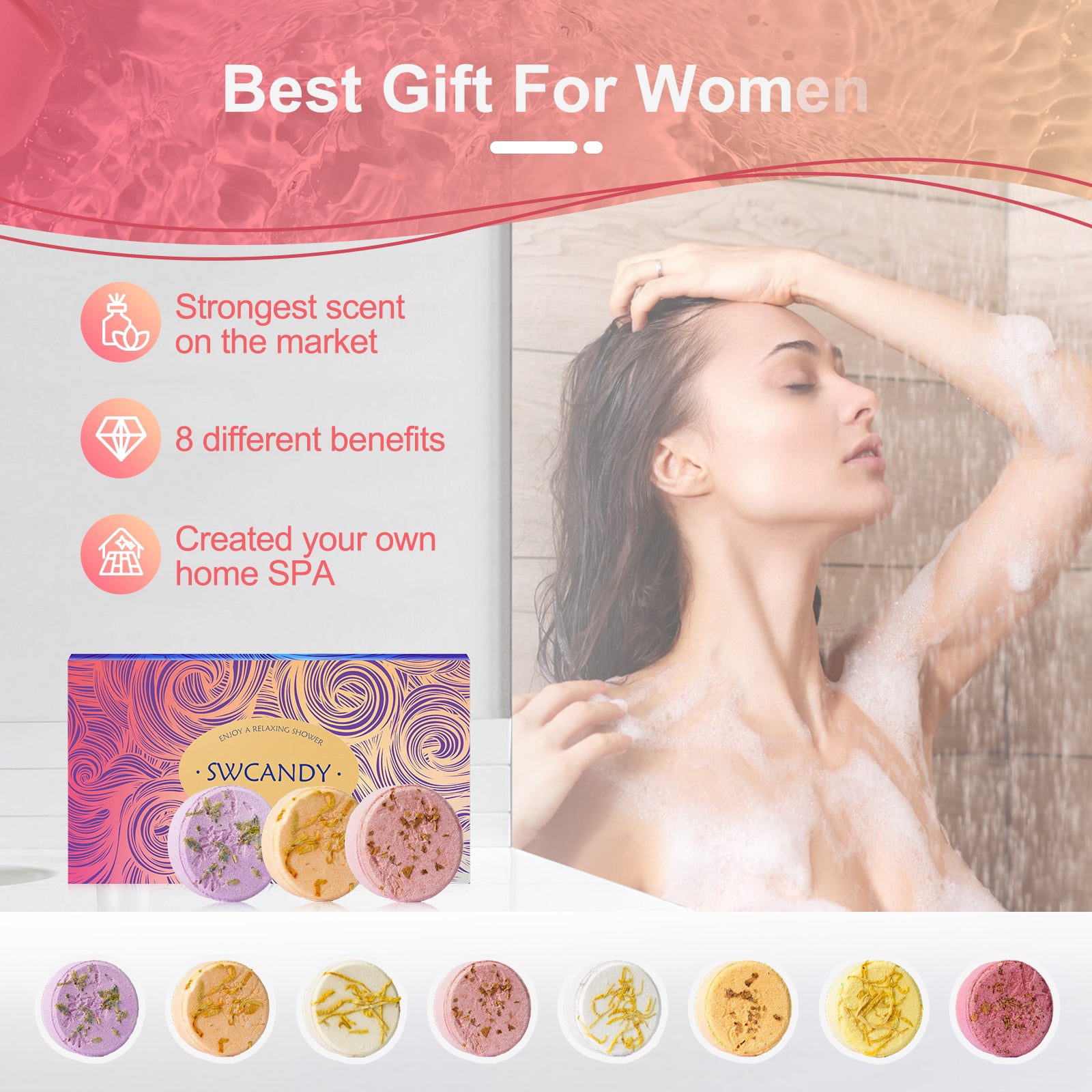 SWCANDY Aromatherapy Shower Steamers Gift Set - 8 Pcs Flower Relaxation Set